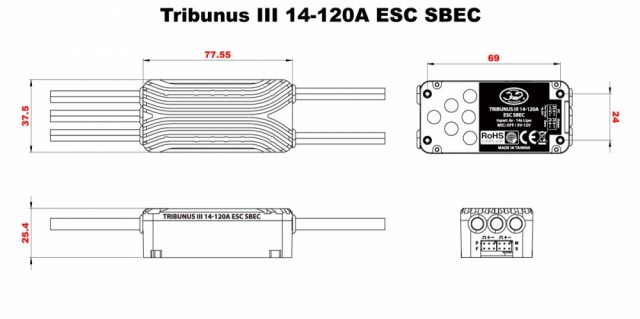 ESC Body Size 39.4 x 79.4 x 23.5 mm (1.55 x 3.12 x 0.92 in)